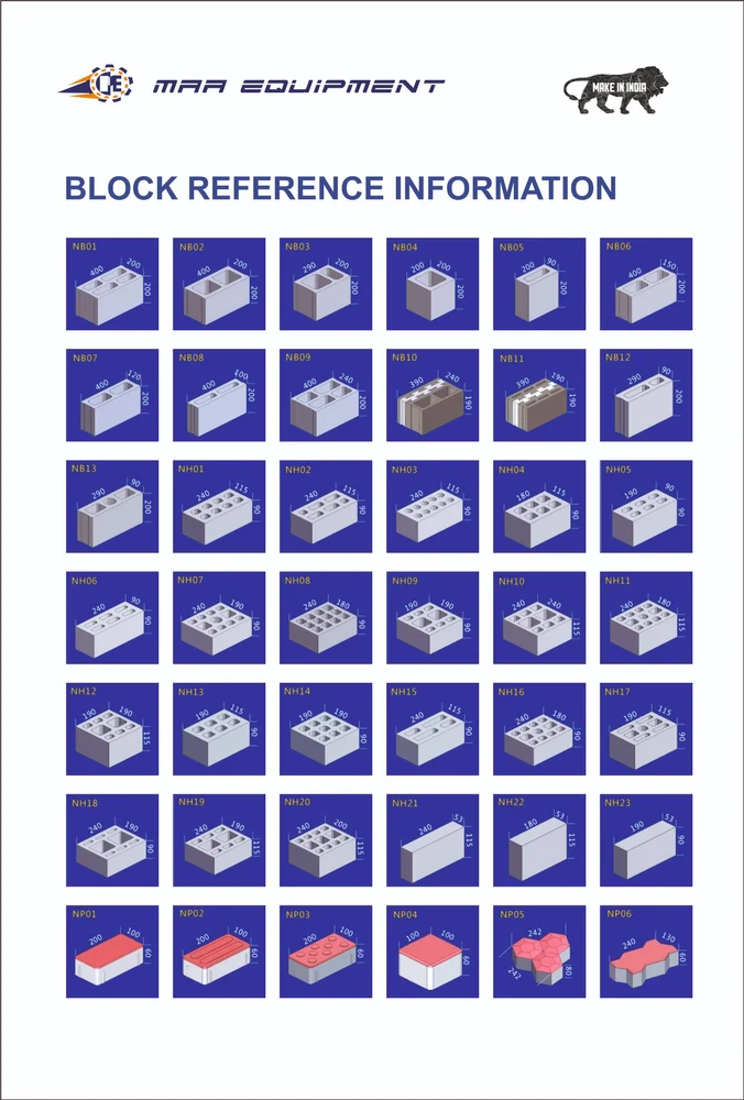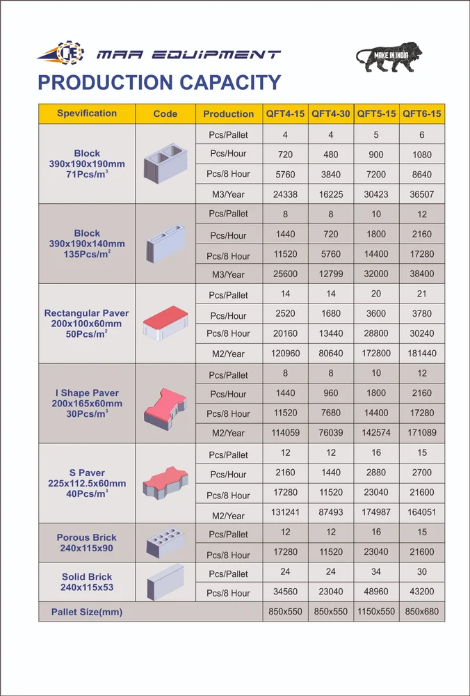 Maa Equipment Multipurpose Block Machine Model QT 5-15 can be used to produce Concrete Blocks, Pavers, Fly Ash Bricks, Kerb Stones of different shapes and sizes