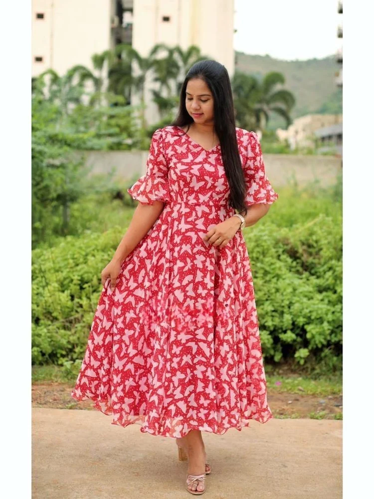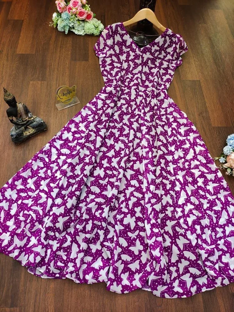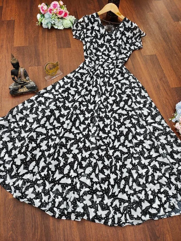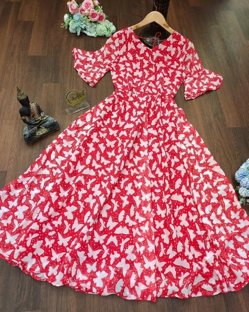 Code: ALF08 Fabric: Faux Georgette Work: Butterfly Digital Print with Sleeve Pattern with Full Lining Style: Indo Western Length: 52" Stitch Type: Full Stitched Size: S(36), M(38), L(40), XL(42), XXL(44).