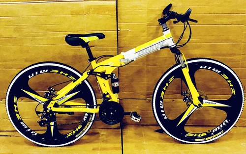 FOLDING CYCLES SPECIFICATIONS 1. Gear 21 gears Shimano Gears. 2. Tyre size:26. " 3. Shock absorbers: front and rear. 4. Mud guard: front and rear. 5. Bottle holder. 6. Brakes: disc brake front and rear. 7. Seat height adjustable. 8. Length: 64". 9. Rim: mac wheel. 10. Package size : 54??29??9. 11. G.W: 20.5 kg N.W: 18kg. GARANTEE AND WARRANTY.... 21 speed