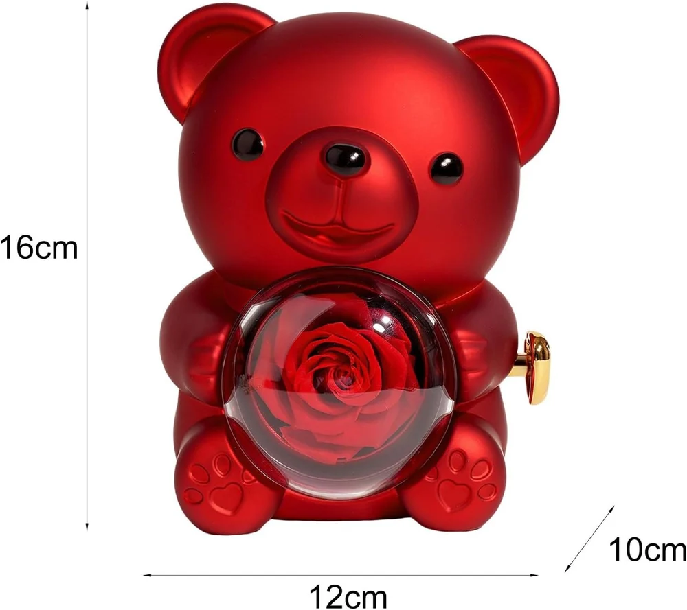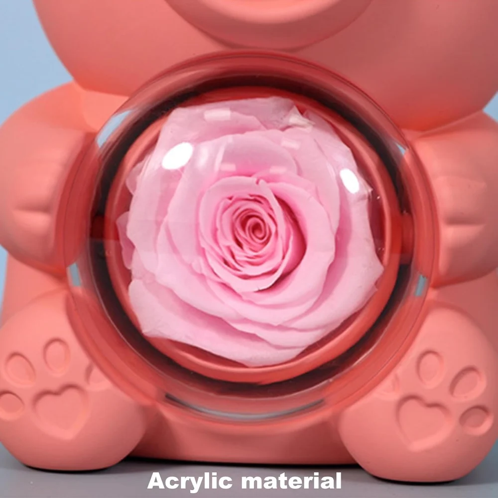 Excellent Durability: Fall in love with the cute shape and exquisite workmanship of our Preserved Real Rose Bear Box. Crafted with acrylic , it promises long-lasting use and easy display, making it the perfect present for your lovers.