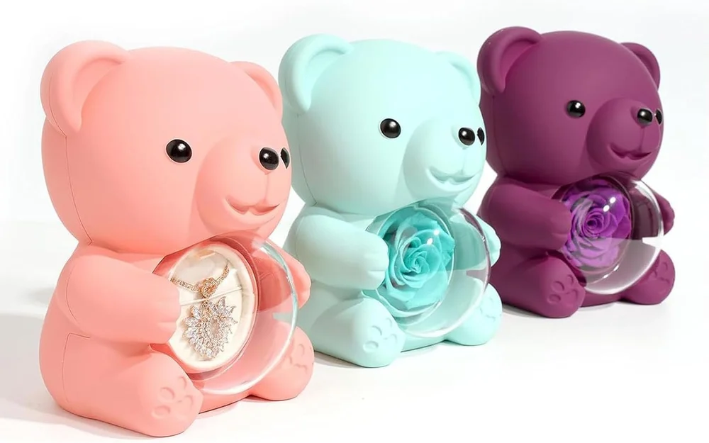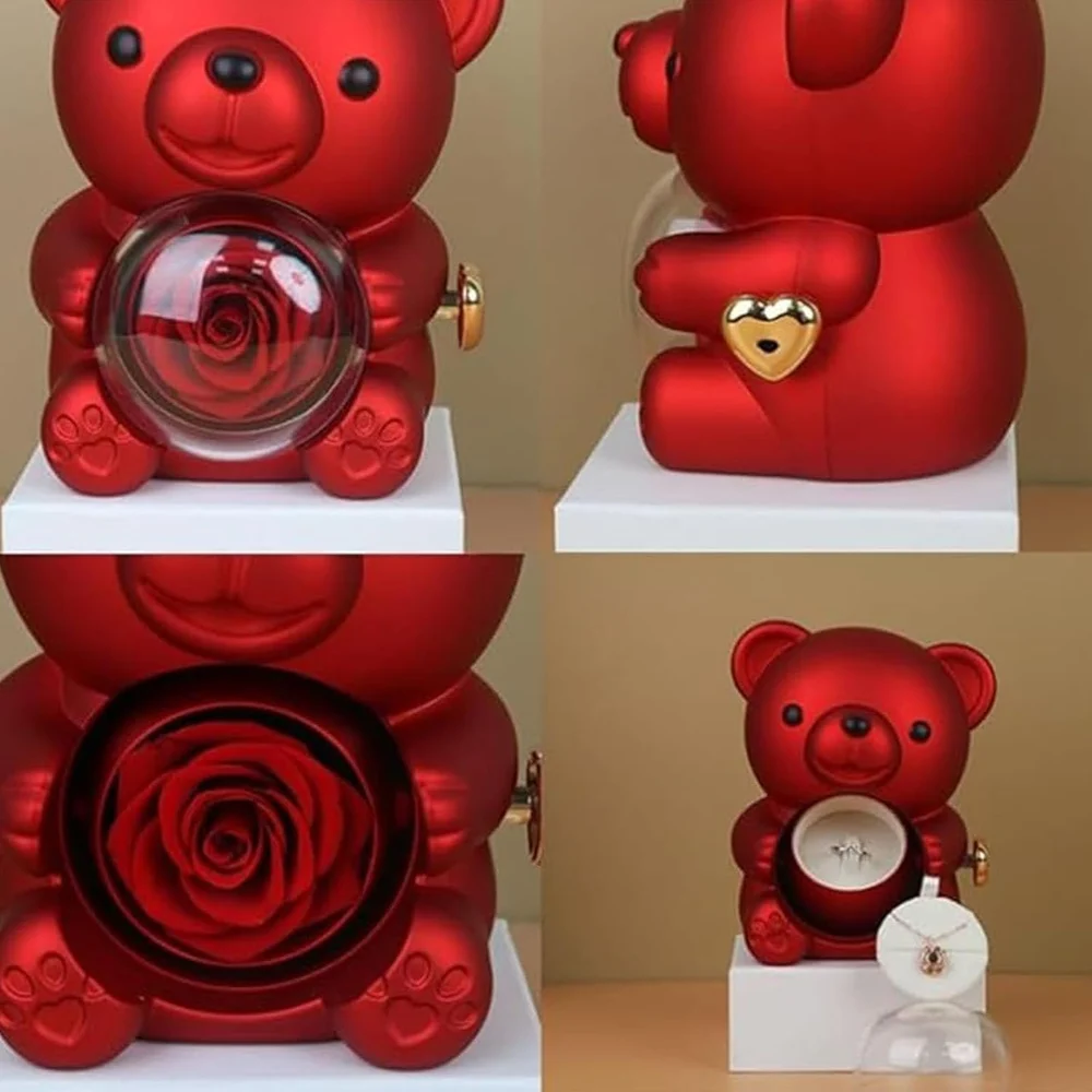 Excellent in Workmanship: Delicately processed dried real roses in our Valentine's Day Rotating Bear Rose Jewelry Box will remain beautiful for years, creating an eternal symbol of love that can be cherished for many the next years.