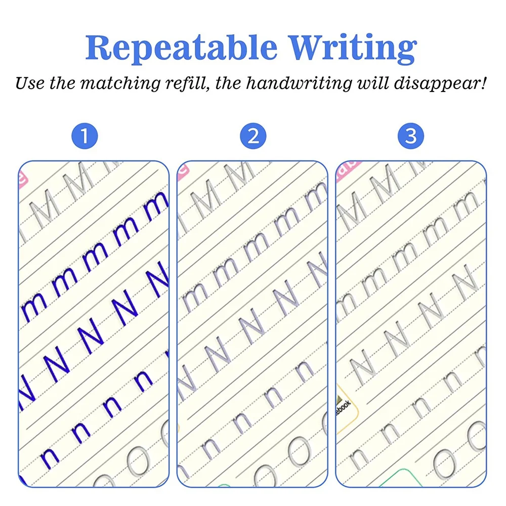 Sank Magic Practice Copybook, Number Tracing Book for Preschoolers with Pen, Magic Calligraphy Copybook Set Practical Reusable Writing Tool Simple Hand Lettering (4 Books + 5 Refill) Number Math Drawing Alphabet Handwriting Magic Practice Reused, Calligraphy Copybook Set for Kids Magic Practice Copybook Reusable for Kids,Magic Calligraphy That Can Be Reused Tracing Handwriting Copybook Set,English Writing Practice Book for Kid