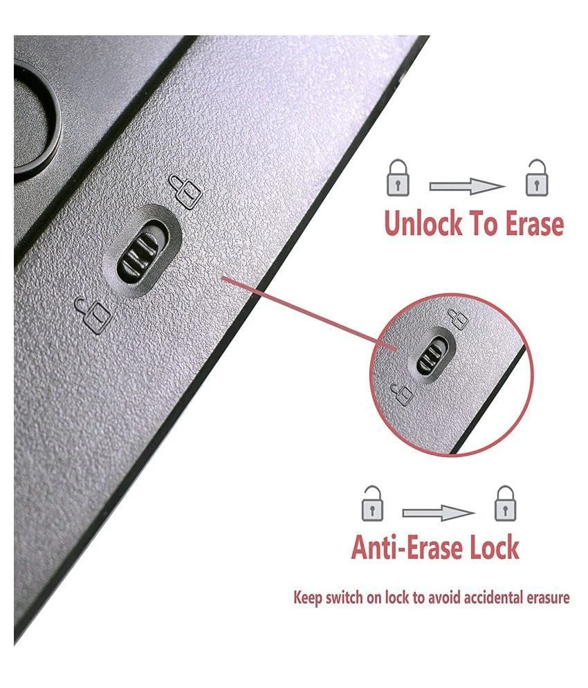 Lock & Delete Function: This LCD drawing pad has a lock function. Just switch the lock button to the right side, the erase button will be locked to prevent accidental deletion and don't worry about losing your great ideas any more. Switch the lock button to the left side will enable the erase button, you can easily erase the pattern with one button.