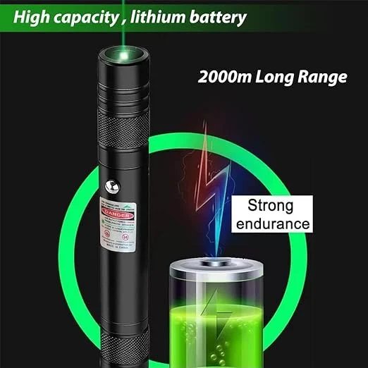LONG RANGE BEAM: The green laser light pointer equipping with premium LED light has a bright and long green beam of 532nm that can be used for various activities. The high-intensity beam can be seen from long distances, max upto 2000m, making it an excellent tool for presentations, stargazing, and outdoor activities.