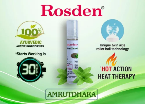 ROSDEN AMRUTDHARA can help you in getting over headache faster particularly when you are travelling or even while driving. It can show its efficacy in relieving headache within 5 minutes or so with the powerful combination of ajvain oil, menthol and kapoor. It is non sticky, non messy and easy to apply while you are travelling. It immediately takes action by penetrating deeper and kicks out your pain and provides instant relief. It fits perfectly in your pocket/handbag and is so easy to use. Roll On acts as an instant stress reliever and also provides a cooling effect.