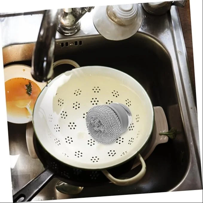1 Set Ball Pot Brush Scrubber Metal Dish