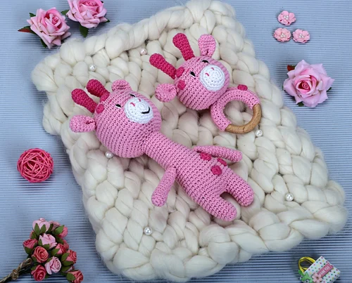 Giraffe Crochet toys and rattle combo Handmade toys Wooden toys