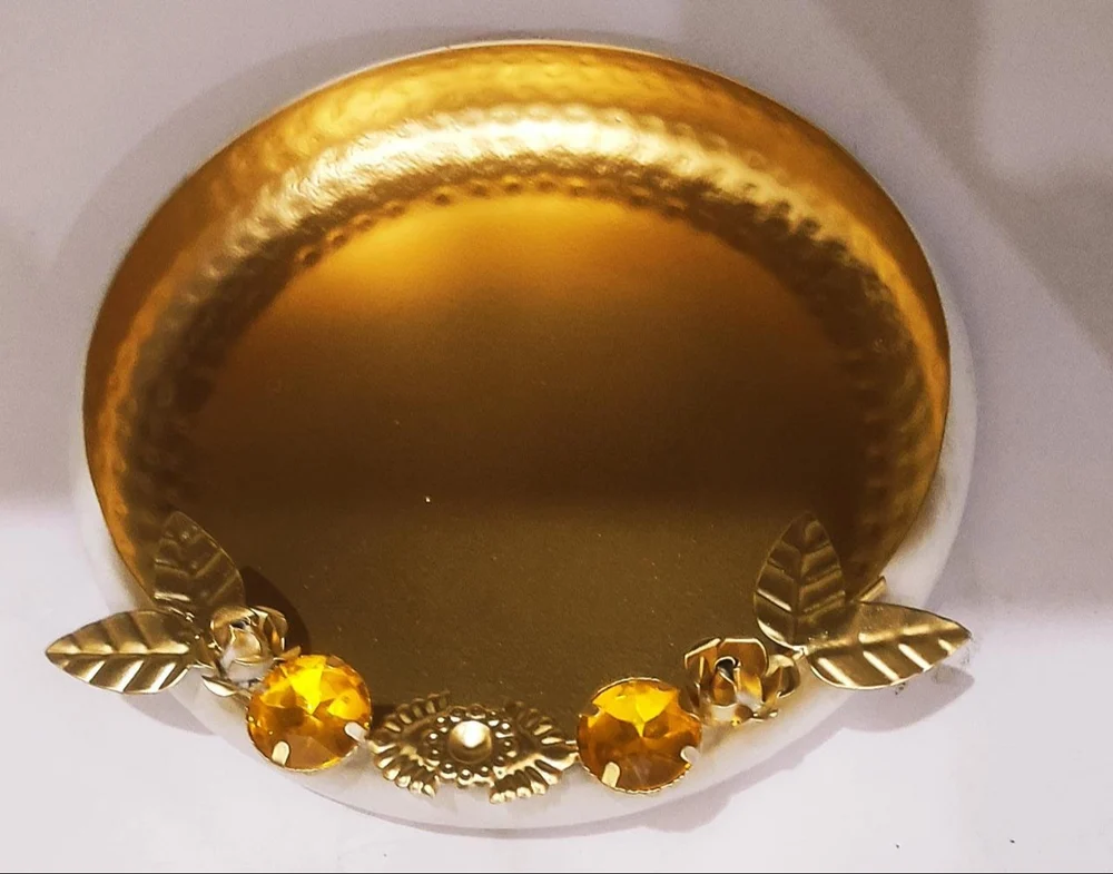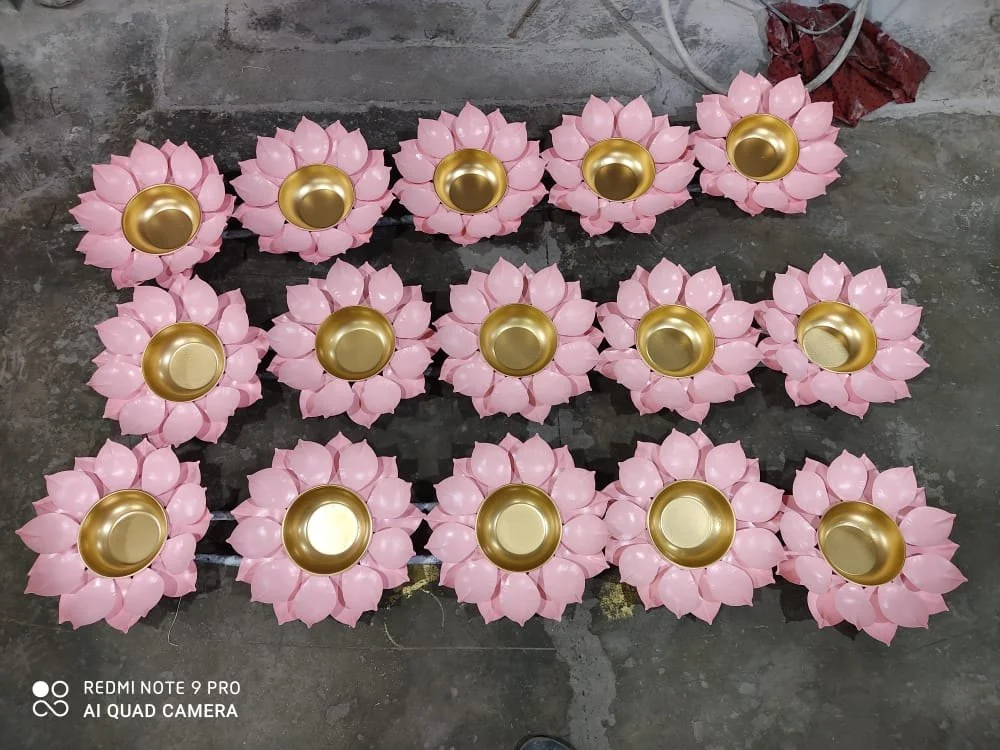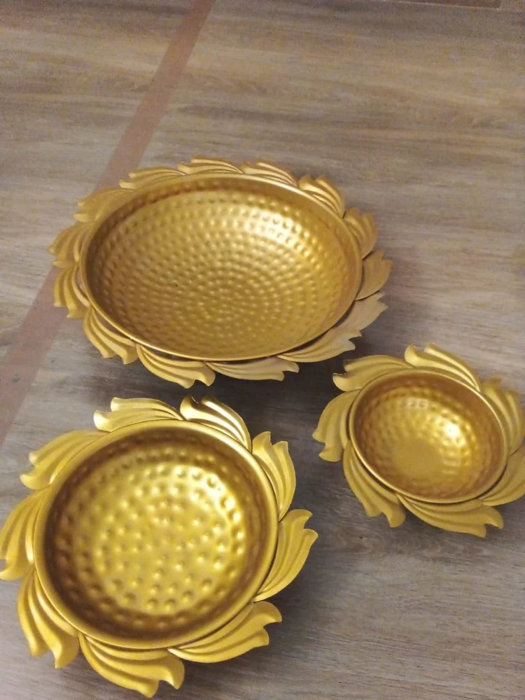 Gold Powder Coated Metal Round Decorative Flower Urli Set Of 3 for Home Decotaio