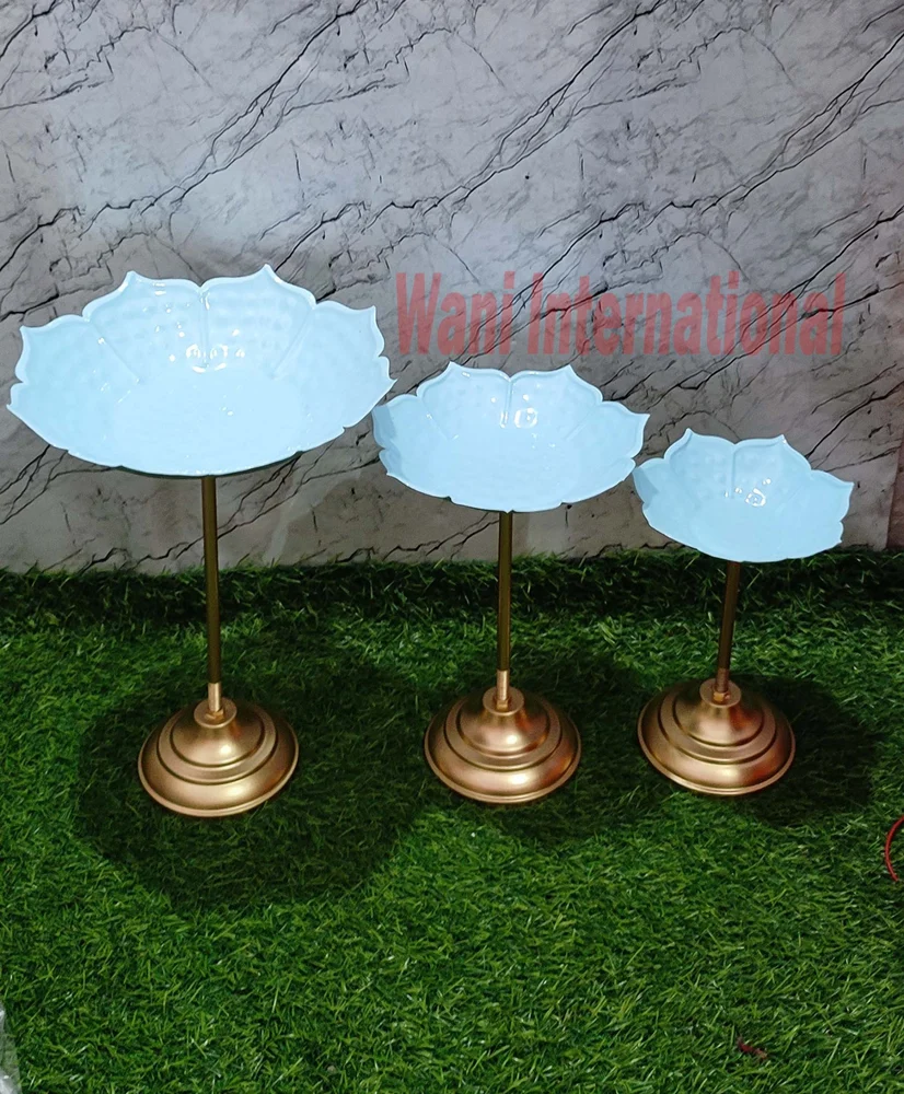Gold Blue Sky Lotus Bowl Urli With Stand