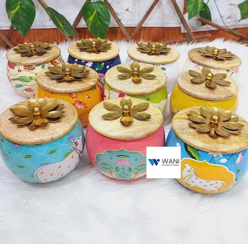 Beautiful Metal Pichwai Jar with Wood Lid