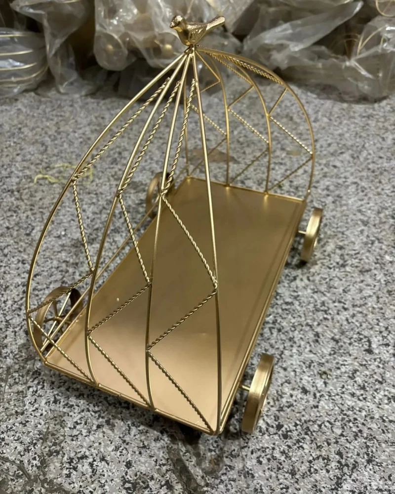 Metal Golden Wheel Hamper Basket