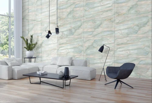 The Alient Ocean Onice Glossy Endless Ceramic Floor and Wall Tiles bring a touch of sophistication with their exquisite onyx-inspired design. Featuring soft oceanic hues and a glossy finish