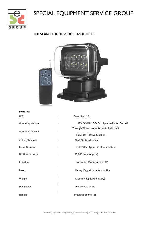 Light Source-Multi LEDBeam Distance-Medium RangePower-50-100 W