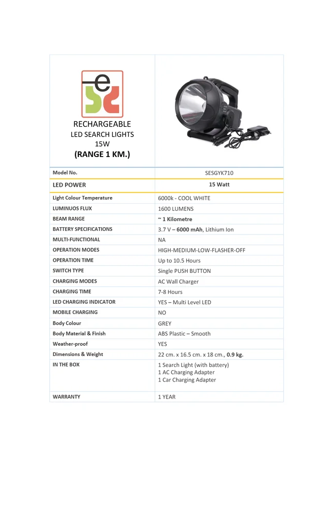 SESG LED Search Light 15w Range 1 Km