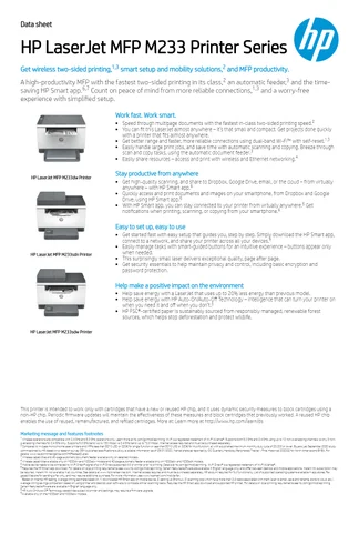 | Model Name/Number | HP M233SDW All-in-One Laserjet Printer |