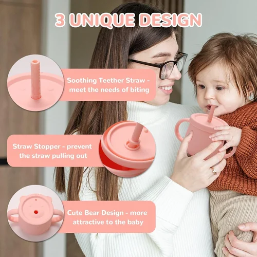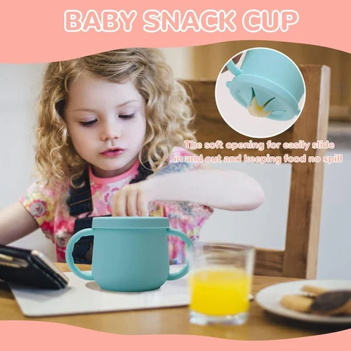 Silicone Baby Cups with Straw and Lid for Snacks