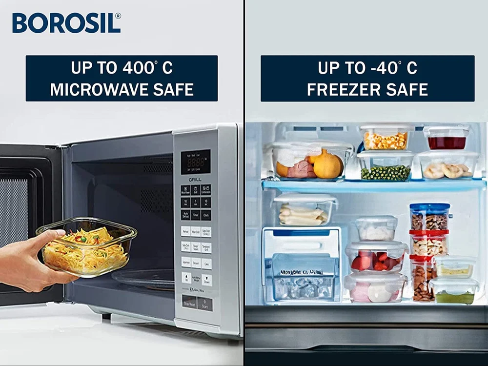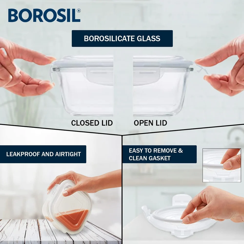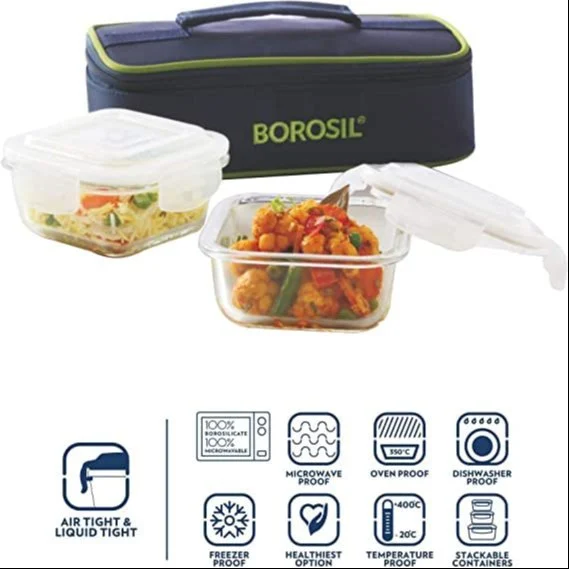 Borosil Glass Horizontal Microwave Safe Office Tiffin Lunch Box Set of 2
